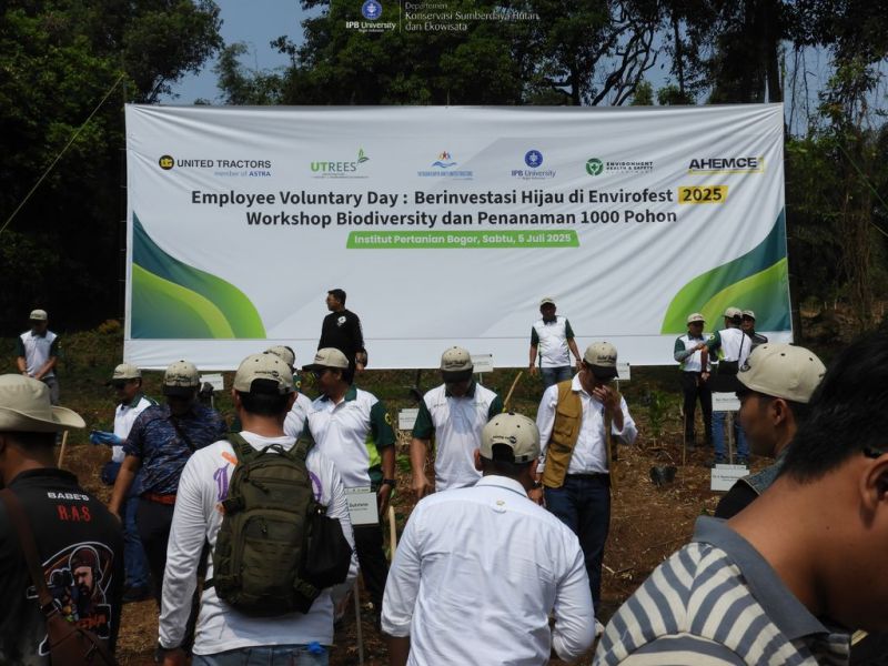 Bogor, 05 Juli 2025. Fakultas Kehutanan dan Lingkungan IPB University berkolaborasi dengan United Tractors (UT) menyelengarakan EnviroFest – Voluntary Day Penanaman Pohon 2025 pada hari Sabtu, 5 Juli 2025 di Taman Hutan Kampus IPB diikuti oleh Direksi UT beserta karyawan serta Pejabat, tenaga pendidik (dosen), dan tenaga kependidikan di lingkungan Fakultas Kehutanan dan Lingkungan IPB University terutama Departemen Konservasi Sumberdaya Hutan dan Ekowisata, Fakultas Kehutanan dan Lingkungan IPB University dan dihadiri juga oleh Putri Indonesia Intelegensia 2024, Lady Diandra.